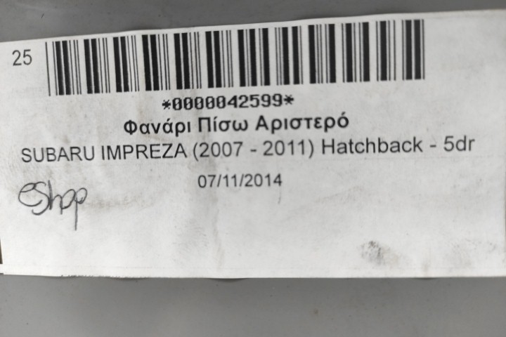 Φανάρι Πίσω Αριστερό για SUBARU IMPREZA (2007 - 2011) Hatchback - 5dr