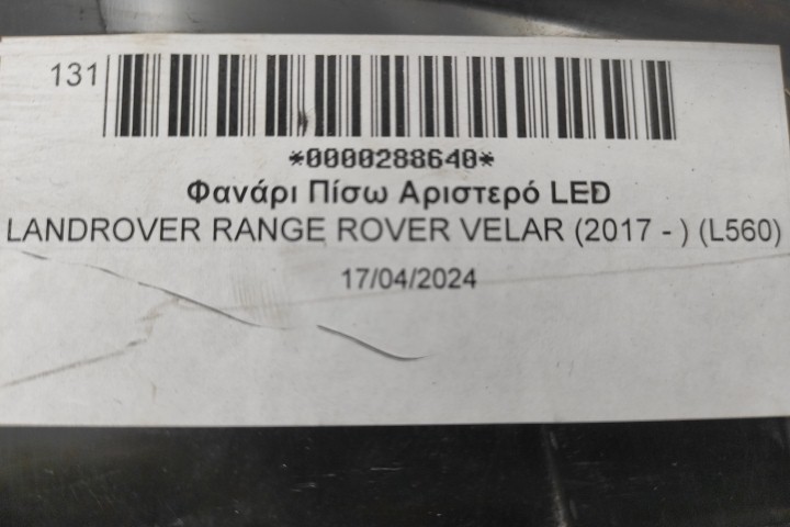 Φανάρι Πίσω Αριστερό LED για LANDROVER RANGE ROVER VELAR (2017 - ) (L560)