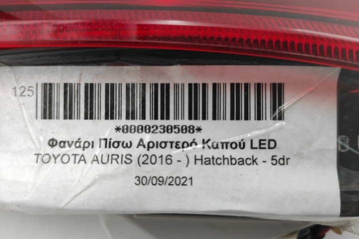 Φανάρι Πίσω Αριστερό Καπού LED για TOYOTA AURIS (2016 - ) Hatchback - 5dr