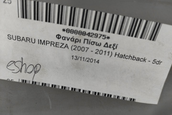 Φανάρι Πίσω Δεξί για SUBARU IMPREZA (2007 - 2011) Hatchback - 5dr