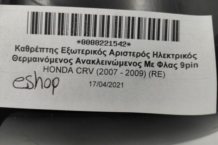 Καθρέπτης Εξωτερικός Αριστερός Ηλεκτρικός Θερμαινόμενος Ανακλεινώμενος Με Φλας 9pin για HONDA CRV (2007 - 2009) (RE)