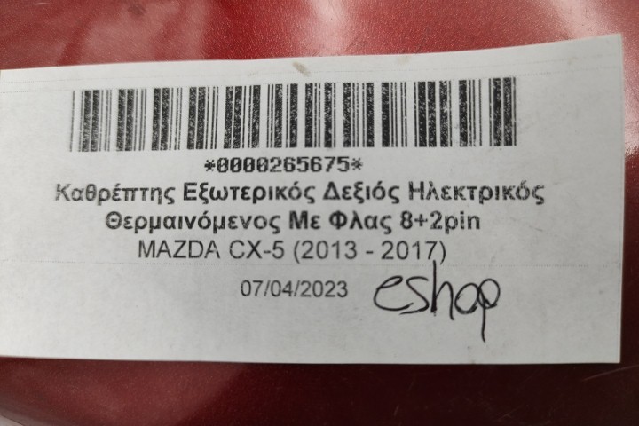 Καθρέπτης Εξωτερικός Δεξιός Ηλεκτρικός Θερμαινόμενος Με Φλας 8+2pin για MAZDA CX-5 (2013 - 2017)