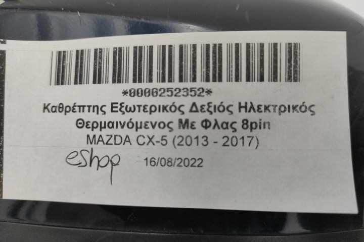 Καθρέπτης Εξωτερικός Δεξιός Ηλεκτρικός Θερμαινόμενος Με Φλας 8pin για MAZDA CX-5 (2013 - 2017)
