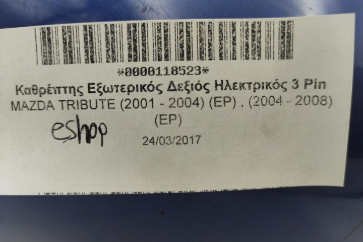 Καθρέπτης Εξωτερικός Δεξιός Ηλεκτρικός 3 Pin για MAZDA TRIBUTE (2001 - 2004) (EP) , (2004 - 2008) (EP)