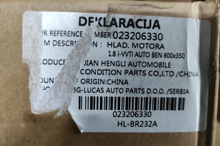 Ψυγείο Κινητήρα Νερού ( Καινουργιο - Ιμιτασιον ) Με Διαστασεις Κυψελης : 60x35 Και Κωδικο 023206330 για TOYOTA COROLLA (2002 - 2004) (E120) Hatchback - 5dr (KM22) , AVENSIS (2003 - 2006) (T250) Sedan - 4dr