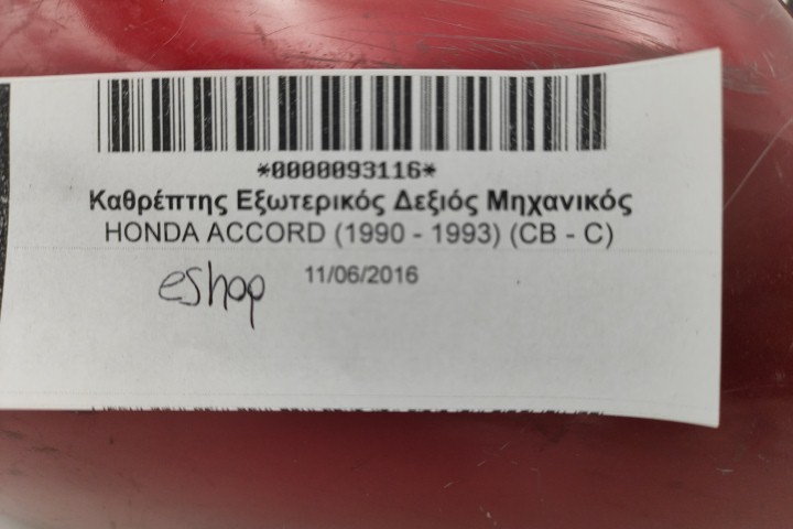 Καθρέπτης Εξωτερικός Δεξιός Μηχανικός για HONDA ACCORD (1990 - 1993) (CB - C)