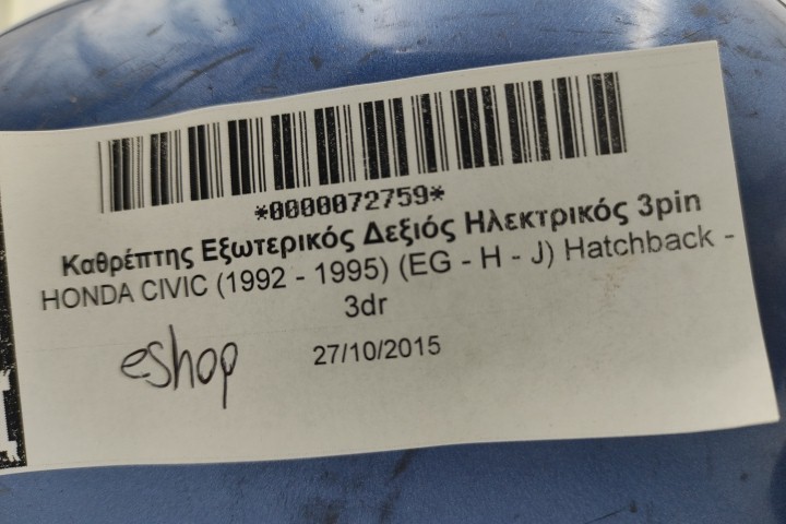 Καθρέπτης Εξωτερικός Δεξιός Ηλεκτρικός 3pin για HONDA CIVIC (1992 - 1995) (EG - H - J) Hatchback - 3dr