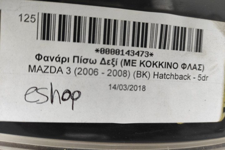 Φανάρι Πίσω Δεξί (ΜΕ ΚΟΚΚΙΝΟ ΦΛΑΣ) για MAZDA 3 (2006 - 2008) (BK) Hatchback - 5dr