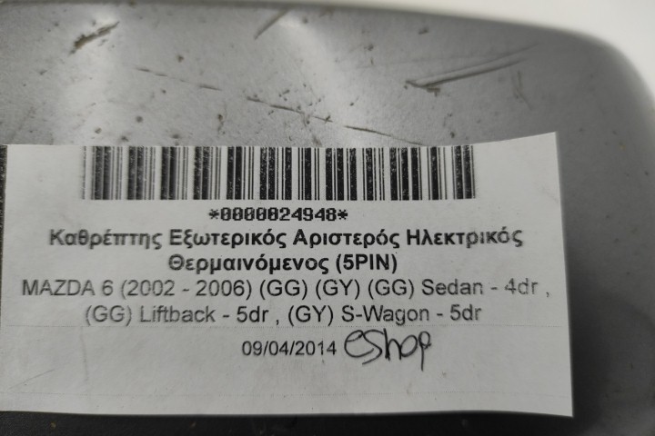 Καθρέπτης Εξωτερικός Αριστερός Ηλεκτρικός Θερμαινόμενος (5PIN) για MAZDA 6 (2002 - 2006) (GG) (GY) (GG) Sedan - 4dr , (GG) Liftback - 5dr , (GY) S-Wagon - 5dr