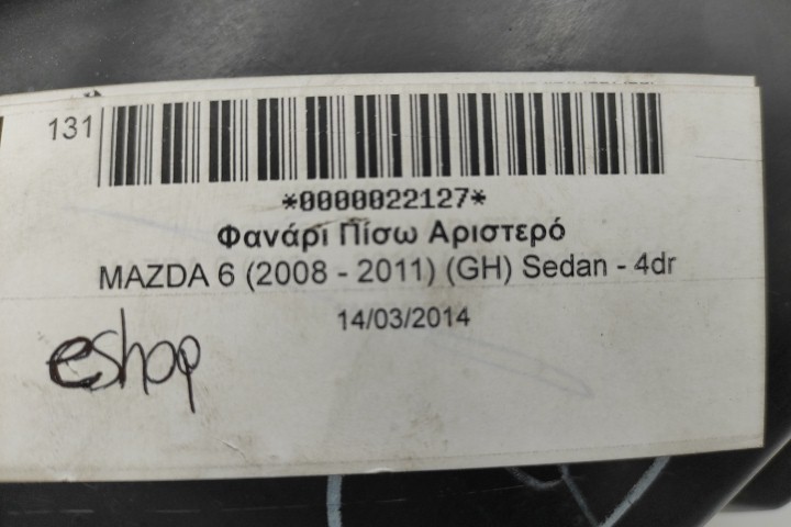 Φανάρι Πίσω Αριστερό για MAZDA 6 (2008 - 2011) (GH) Sedan - 4dr