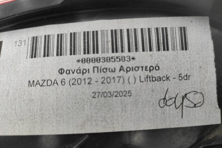 Φανάρι Πίσω Αριστερό για MAZDA 6 (2012 - 2017) ( ) Liftback - 5dr