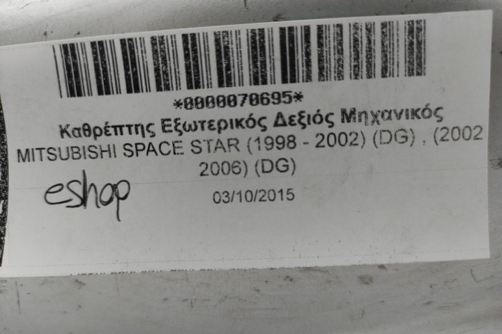 Καθρέπτης Εξωτερικός Δεξιός Μηχανικός για MITSUBISHI SPACE STAR (1998 - 2002) (DG) , (2002 - 2006) (DG)