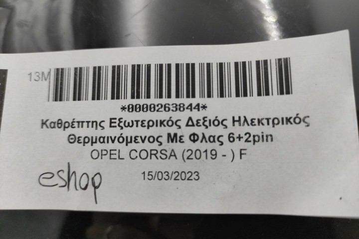 Καθρέπτης Εξωτερικός Δεξιός Ηλεκτρικός Θερμαινόμενος Με Φλας 6+2pin για OPEL CORSA (2019 - ) F