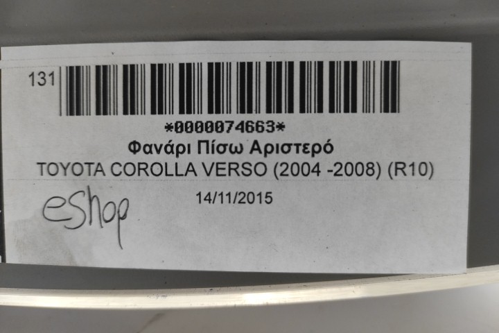 Φανάρι Πίσω Αριστερό για TOYOTA COROLLA VERSO (2004 -2008) (R10)