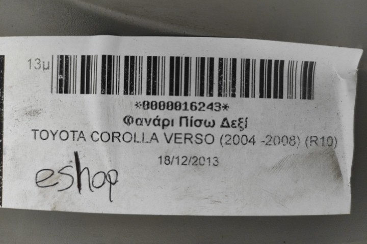 Φανάρι Πίσω Δεξί για TOYOTA COROLLA VERSO (2004 -2008) (R10)