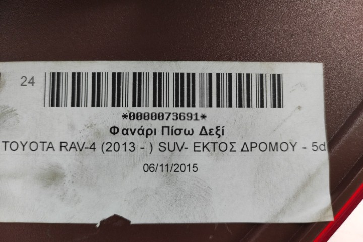 Φανάρι Πίσω Δεξί για TOYOTA RAV-4 (2013 - ) SUV- ΕΚΤΟΣ ΔΡΟΜΟΥ - 5dr