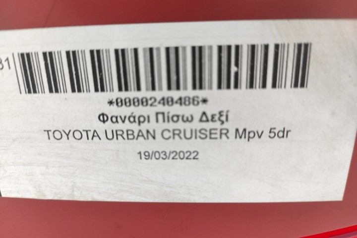 Φανάρι Πίσω Δεξί για TOYOTA URBAN CRUISER Mpv 5dr
