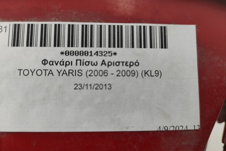 Φανάρι Πίσω Αριστερό για TOYOTA YARIS (2006 - 2009) (KL9)