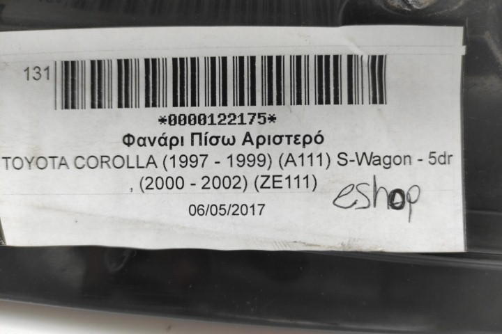 Φανάρι Πίσω Αριστερό για TOYOTA COROLLA (1997 - 1999) (A111) S-Wagon - 5dr , (2000 - 2002) (ZE111)
