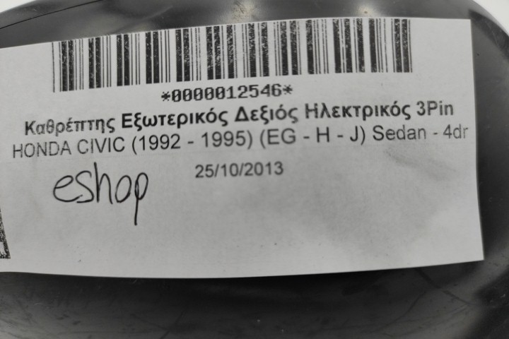 Καθρέπτης Εξωτερικός Δεξιός Ηλεκτρικός 3Pin για HONDA CIVIC (1992 - 1995) (EG - H - J) Sedan - 4dr