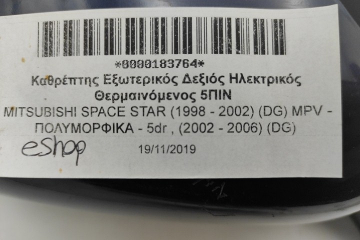 Καθρέπτης Εξωτερικός Δεξιός Ηλεκτρικός Θερμαινόμενος 5ΠΙΝ για MITSUBISHI SPACE STAR (1998 - 2002) (DG) MPV - ΠΟΛΥΜΟΡΦΙΚΑ - 5dr , (2002 - 2006) (DG)